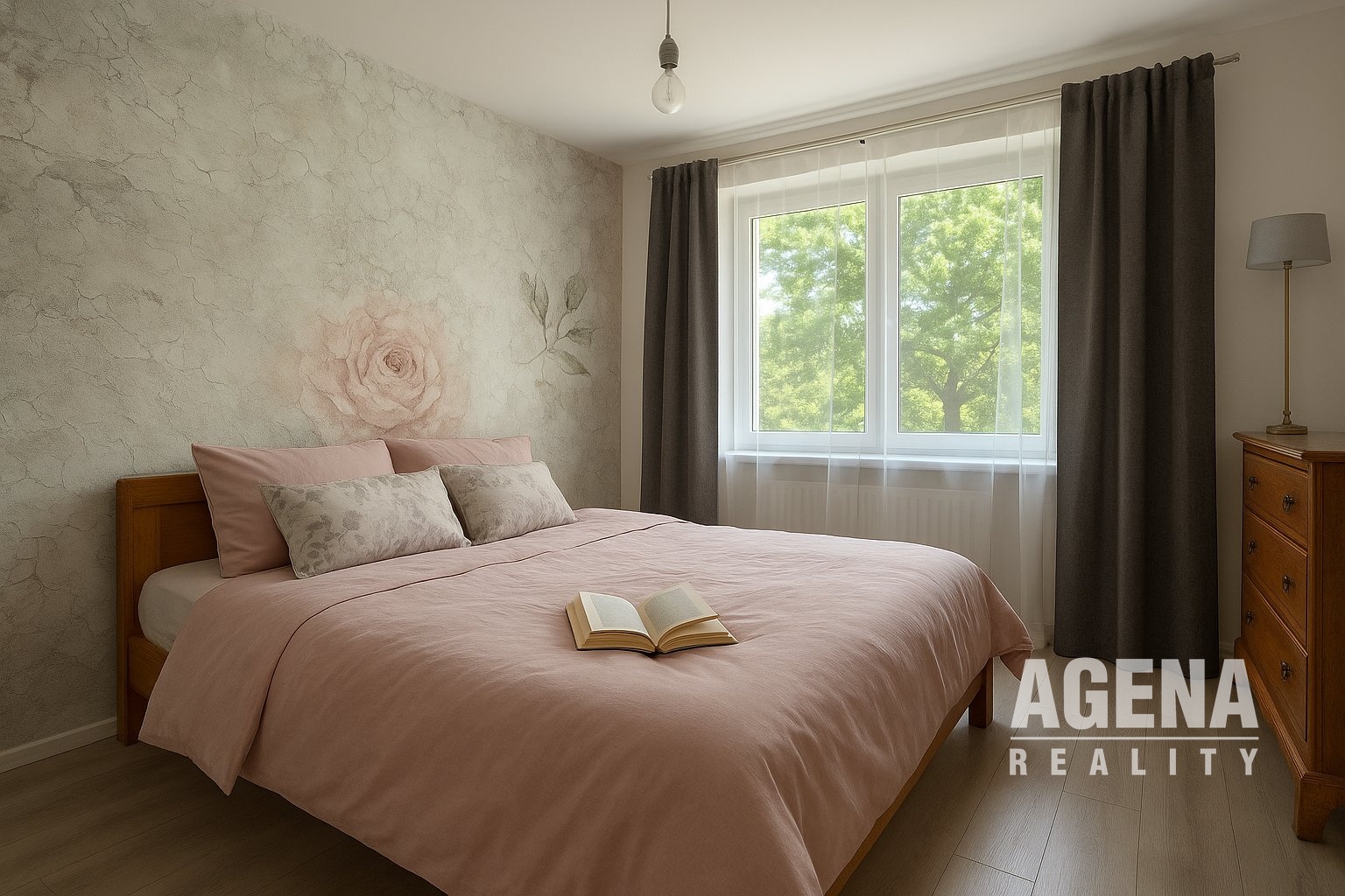 Ložnice (13,5 m²) nabízí dostatek prostoru pro klidný spánek.