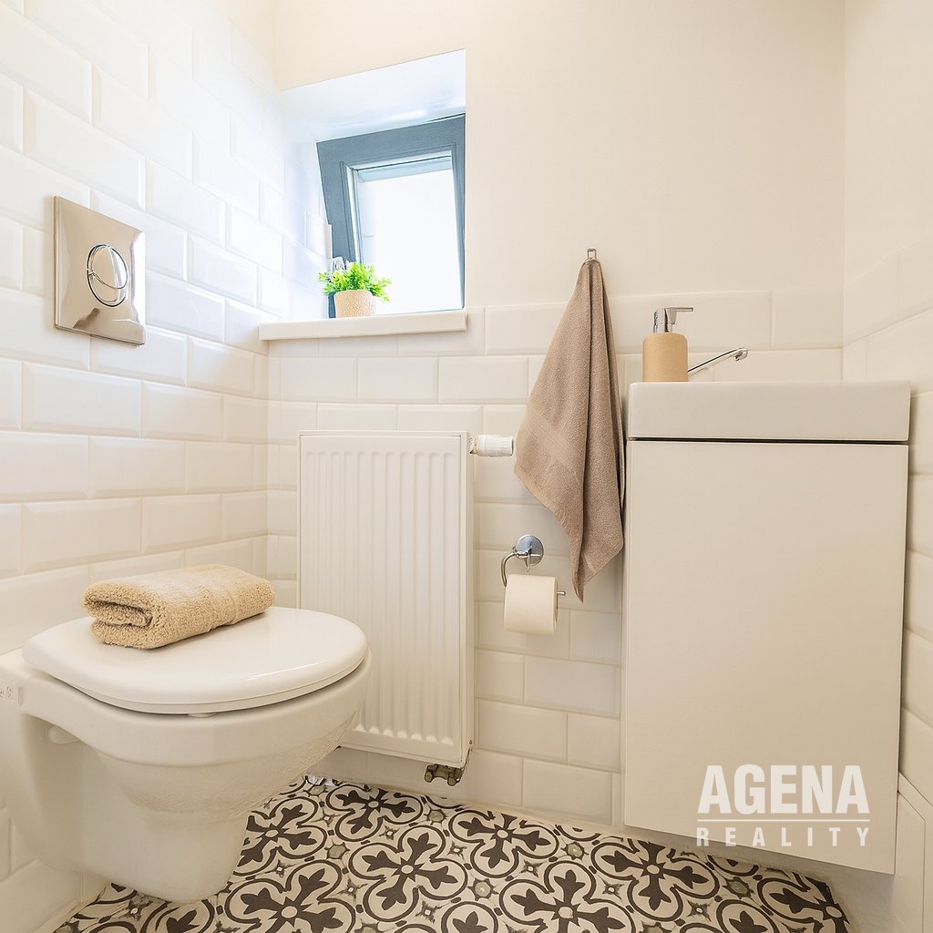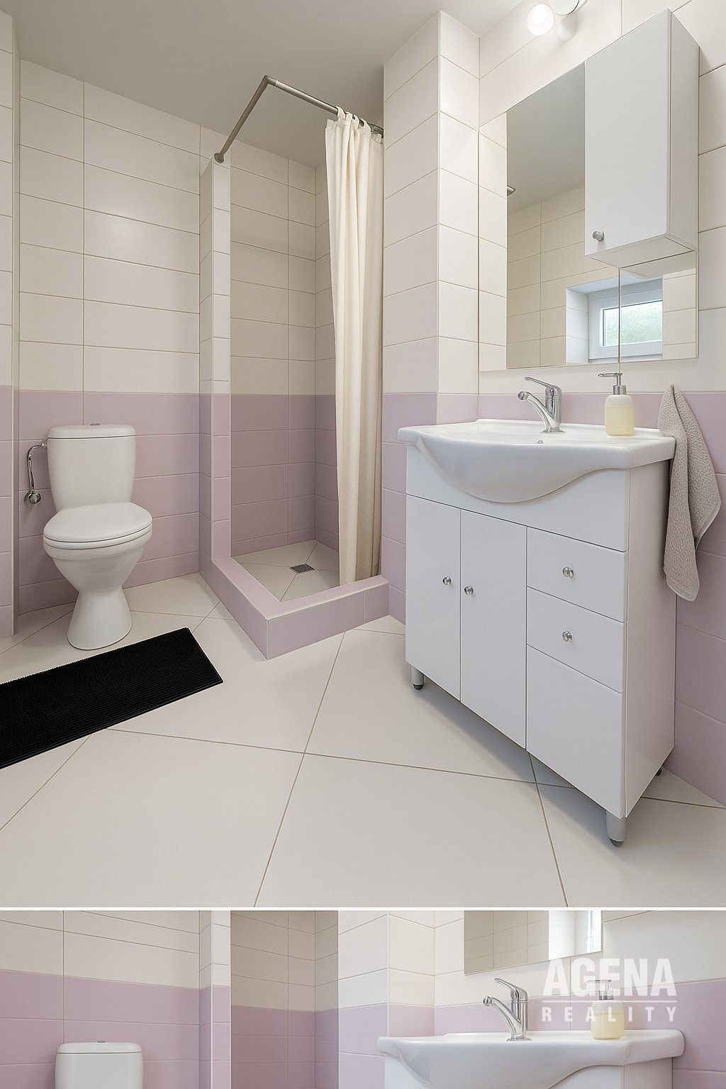 Koupelna se sprchovým koutem a samostatným WC dodává komfort.