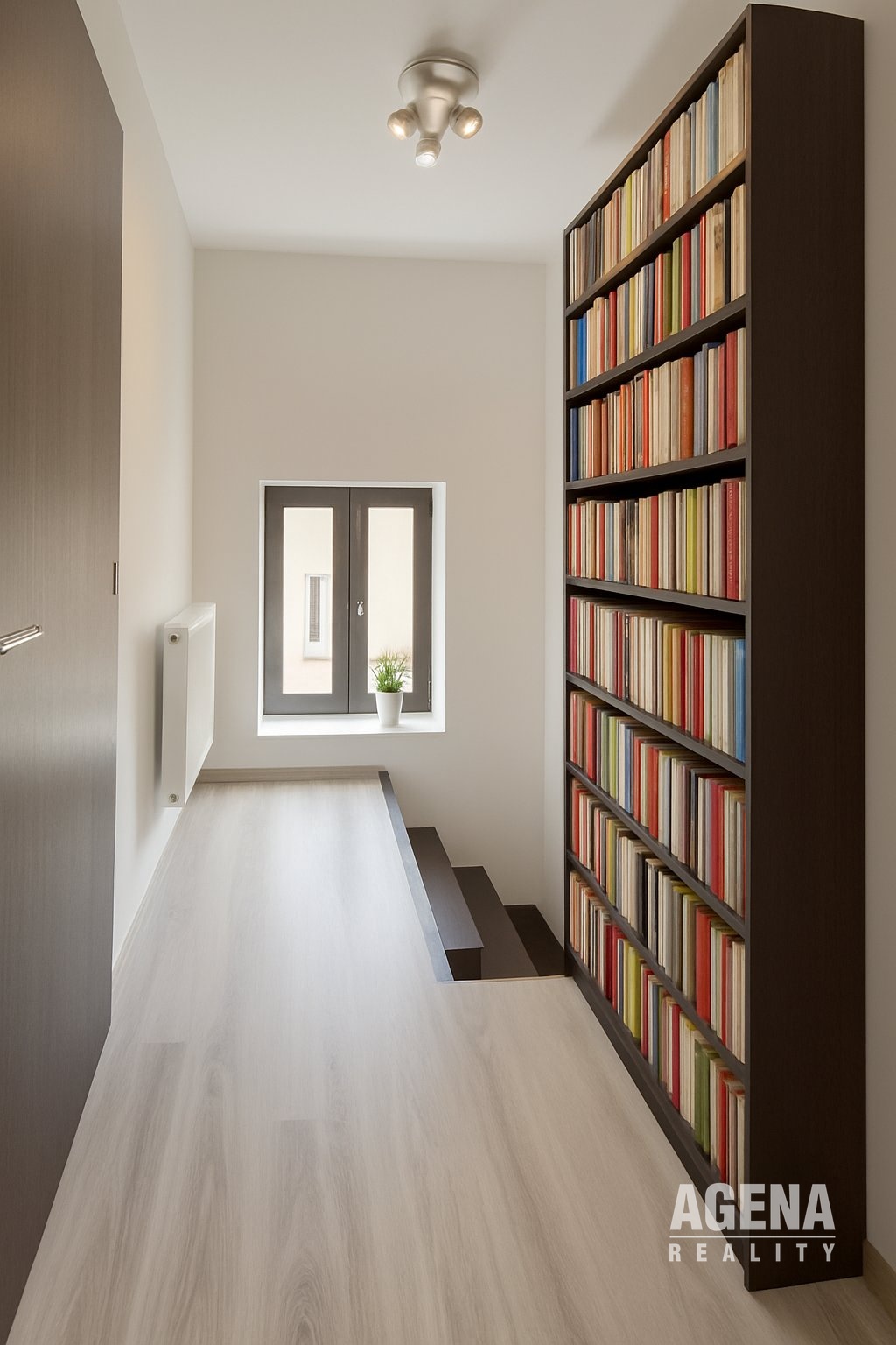 Na něj navazuje ložnice (14,9 m²) s výhledem do klidné ulice a zeleně.