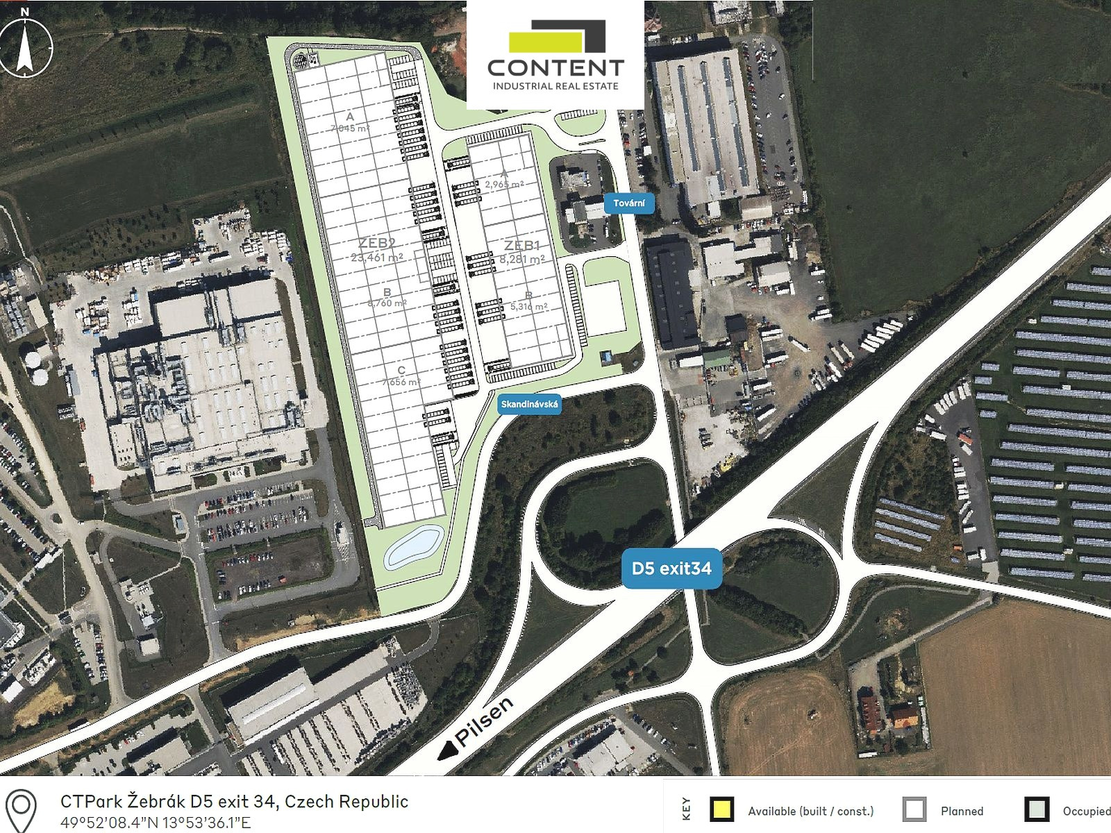 V zastoupení majitele a bez provize nabízíme sklad nebo výrobní prostory až 24049 m² v nově vznikajícím průmyslovém areálu v dálnice D5, exit 34.