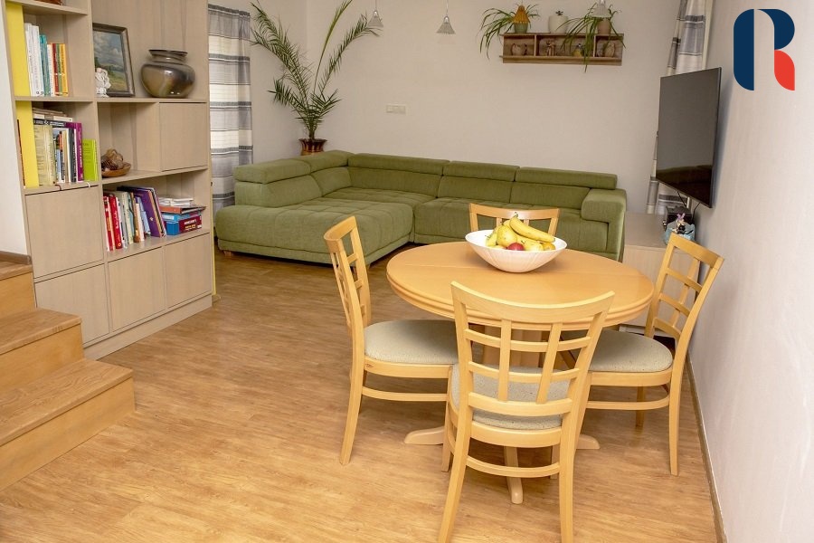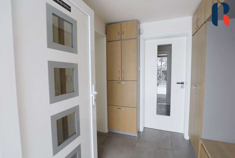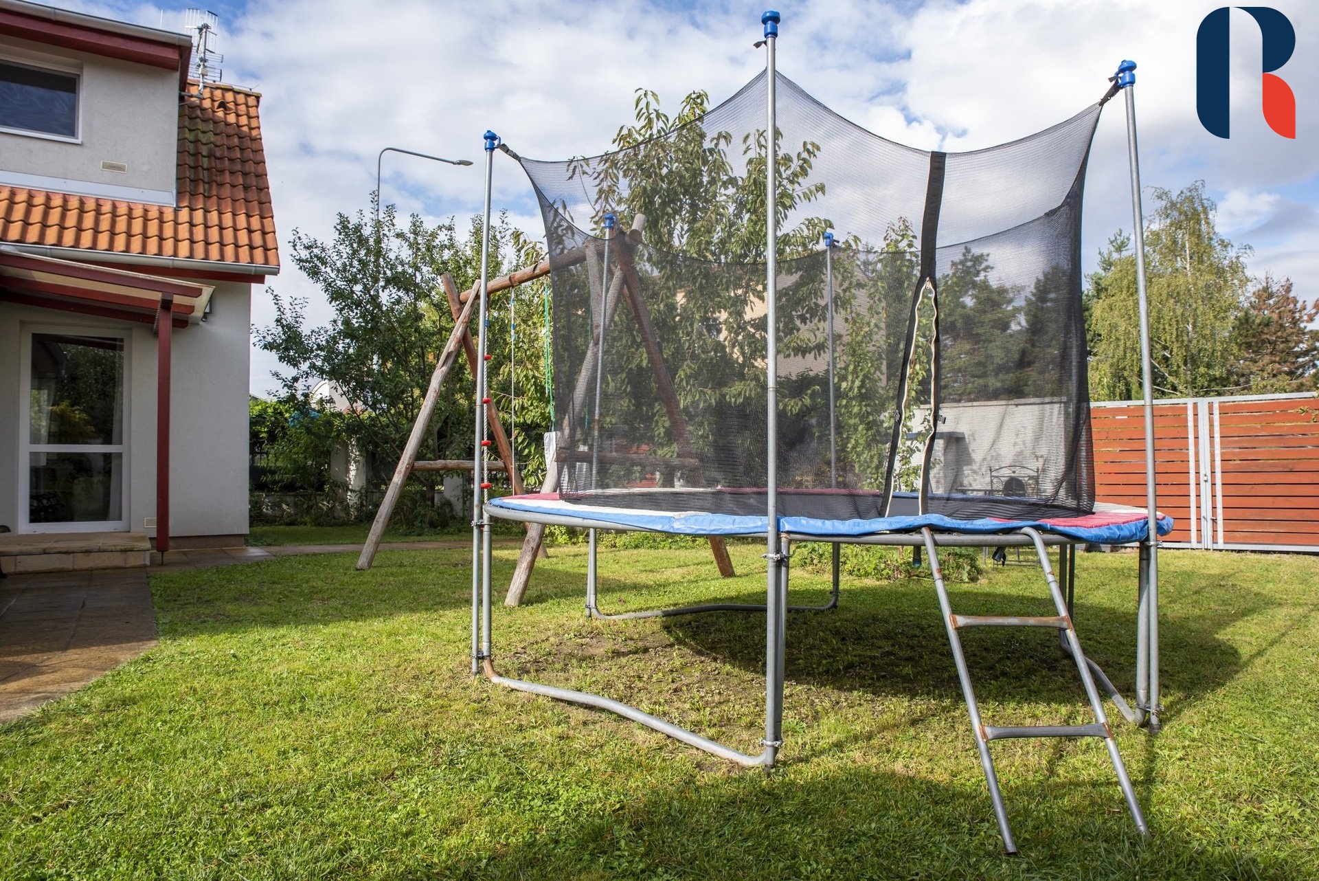 Samostatně stojící patrový dům 4+kk s podlahovou plochou 97 m2 disponuje 4 samostatnými pokoji, 2 koupelnami s wc a technickou místností. Interiér je prakticky dispozičně řešen, aby bylo využito každé místo ( vybavení na míru, vestavěné skříně), dům tak působí prostorně a zároveň útulně. Velkou výhodou je dostatek přirozeného světla v celém domě, ticho a přímý vstup z obývacích prostor na zahradu.