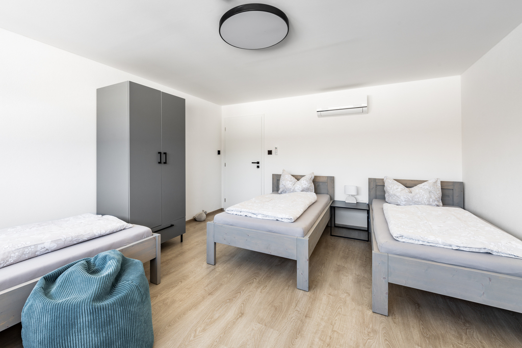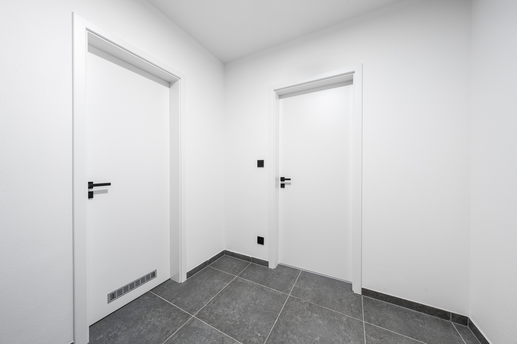 Apartmán je dokončen v nadstandardním provedení, které zahrnuje kvalitní plastohliníková okna a posuvné dveře typu HS portál s izolačním trojsklem, venkovní žaluzie, podlahové vytápění, v koupelnách navíc s topnými žebříky, nástěnné klimatizace ve všech obytných místnostech, elektrický zásobníkový ohřívač vody, zabezpečovací zařízení JABLOTRON s aplikací pro dálkové ovládání alarmu i celé domácnosti (ovládání klimatizace, topení či venkovních žaluzií), vnitřní schodiště s masivními dřevěnými nášlapy, interiérové dveře bílé s obložkovými zárubněmi, lepené vinylové podlahy v kombinaci s keramickou dlažbou, obklady či sanitu od renomovaných výrobců.