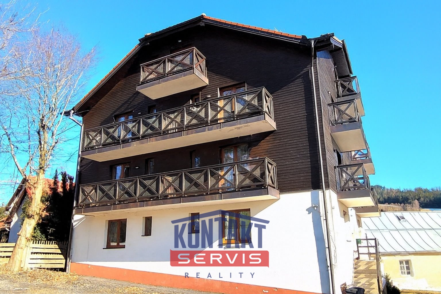 V zastoupení klienta nabízíme k pronájmu nádherný podkrovní byt 1+kk s balkónem (4,2 m2) o užitné ploše 50 m² ve třetím podlaží bytového domu v klidné lokalitě Železné Rudy. Tento útulný podkrovní byt ve výborném stavu je ideální volbou pro ty, kteří hledají kvalitní bydlení v klidném prostředí s nádhernou přírodou na dosah ruky. Byt je kompletně zařízen stylovým nábytkem, který vytváří útulnou a harmonickou atmosféru. Moderní kuchyňská linka je vybavena všemi potřebnými spotřebiči: elektrická trouba, sklokeramická varná deska, lednice, mikrovlnka a pračka. K dispozici je také televize pro vaše pohodlné chvíle odpočinku. V přízemí je také sklep o velikosti 4 m2. Vše je připraveno k okamžitému užívání. Z balkonu si můžete vychutnat krásný výhled do okolní šumavské krajiny. Soukromé, udržované parkoviště přímo za domem zajišťuje pohodlné parkování.
