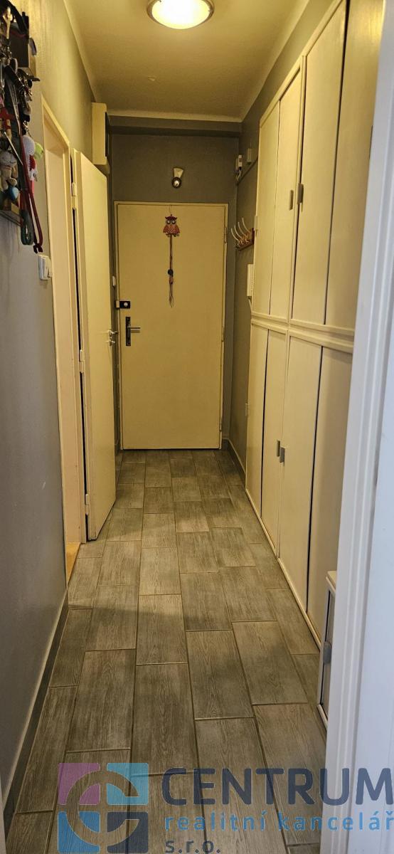 chodba s vestavěnou skříní; kuchyň - kuchyňská linka vč. kombinovaného sporáku vč. digestoře, myčka nádobí; obývací pokoj se vstupem na lodžii; ložnice vč. vybavení - manželská postel bez matrací, 2x vestavěná skříň; dětský pokoj; zděná koupelna s vanou a místem na pračku i sušičku; samostatná toaleta; v bytě jsou plovoucí podlahy a dlažba ( chodba, koupelna a toaleta ), plastová okna.