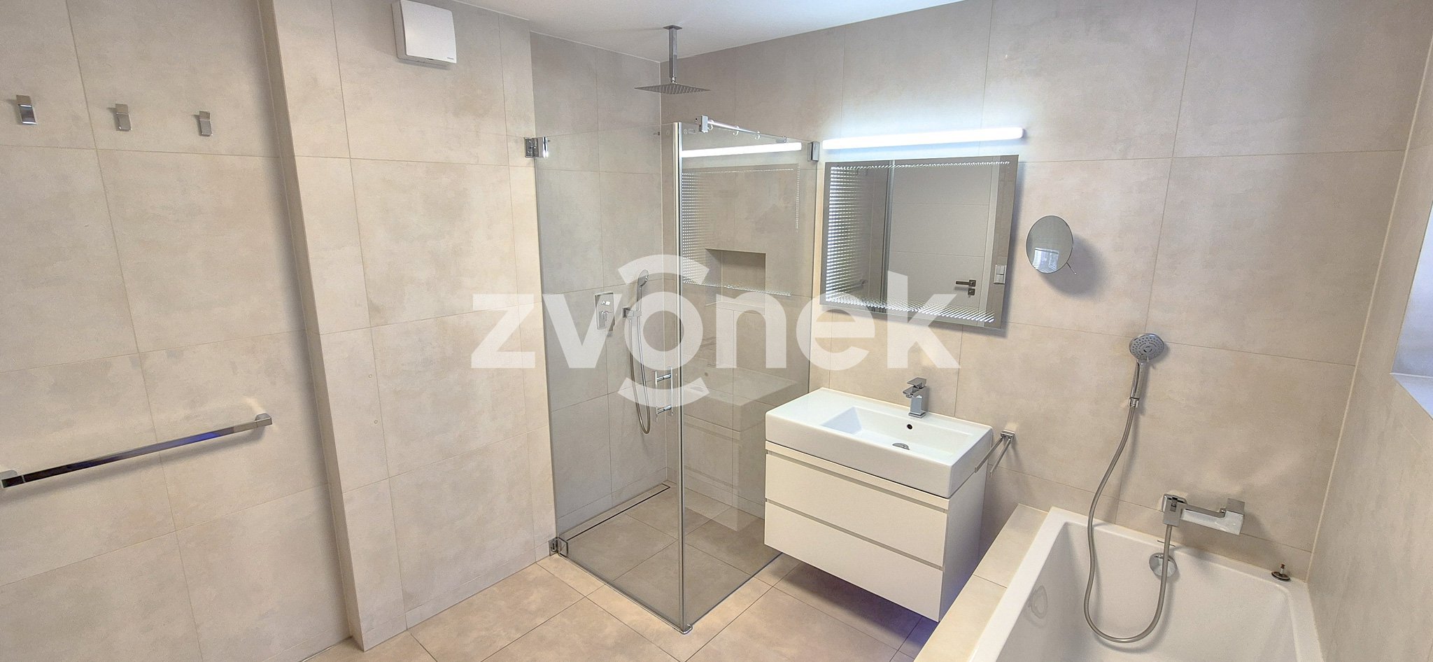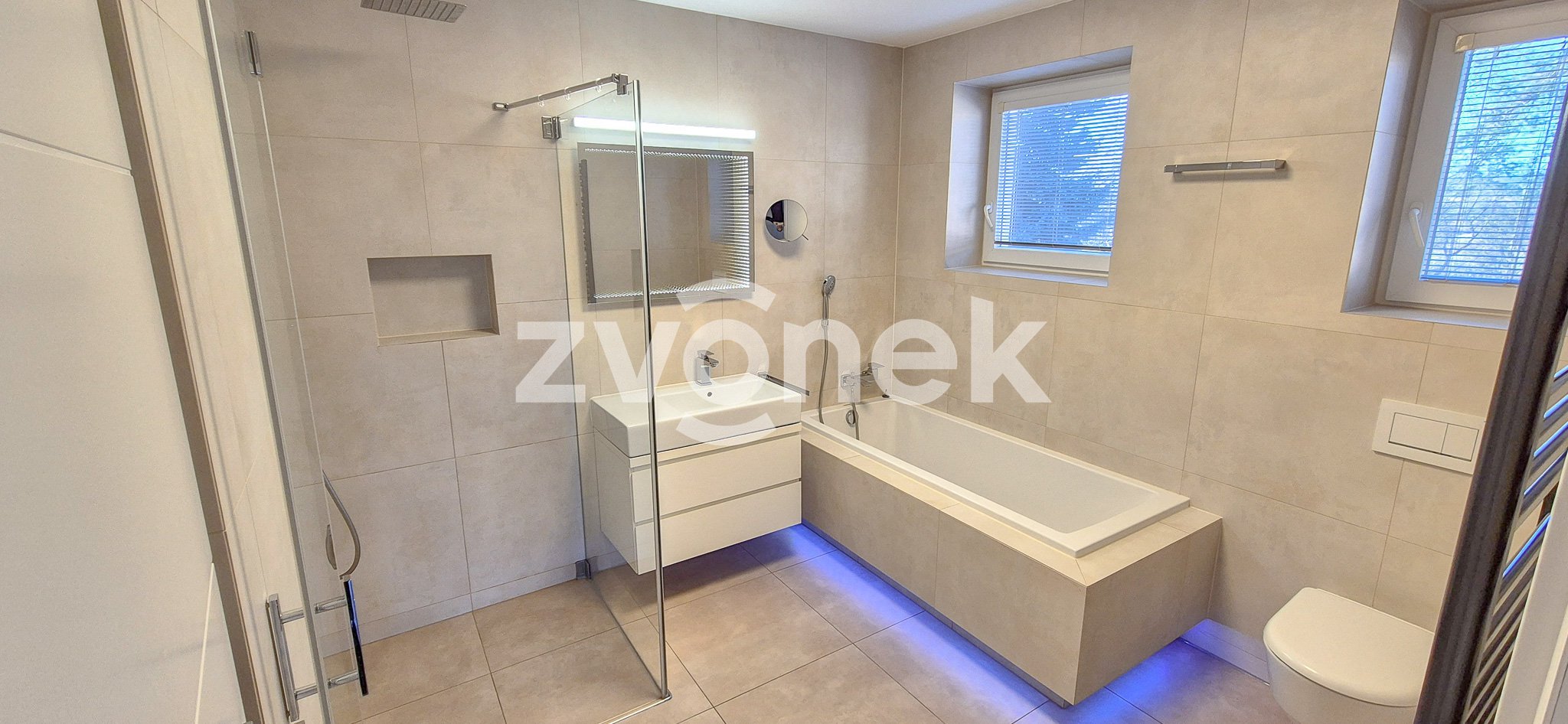 Nabízíme pronájem nově zrekonstruovaného bytu 2+1 k dlouhodobému pronájmu. Jedná se o samostatnou bytovou jednotku v rodinném domě (celkem pouze 2 byty) včetně zahrady, krytého parkovacího stání a posezení pod pergolou. Byt se nachází v horním patře. Byt je koncipován jako 2+1, plocha 75 m2 + 20 m2 sklep + chodba. Byt je vybaven kuchyní, stolem a židlemi, postelí (na přání), roletami a žaluziemi v oknech, sítěmi proti hmyzu ve ventilačních oknech. K bytu patří sklep 25 m2 ve kterém se nachází nářadí na údržbu domu a zahrady včetně sekačky a dílenský ponk s vybavením. K dispozici je také velký mrazák, možnost dovybavení pračkou. Ve sklepě je také samostatný plynový kotel, samostatný plynový bojler 155 l pro byt. Byt je dále vybaven kvalitními německými radiátory Kermi. V koupelně je pak podlahové topení + otopný žebřík. Dálková regulace topení je nainstalována v obývacím pokoji. Dům má pro oba byty společný hlavní vchod a chodbu. Podrobný popis: obývací pokoj je volnoprostorově propojen s kuchyní a jídelnou. Je vybaven velkým kruhovým Led světlem s dálkovým ovládáním a regulací barev a svitu. Podlaha je z příjemného vinylu s dekorem dřeva. Ložnice je oddělena od obývacího pokoje příčkou s protihlukovou výplní a je propojena s obývacím pokojem dveřmi s protihlukovou ochranou. Na přání může být vybavena italskou stylovou postelí z masivu a matracemi o velikosti 220 x 160 cm. Koupelna je vybavena podlahovým topením s přímou regulací, bezrámovým moderním sprch. koutem Kermi, vanou podsvícenou Led páskem, zrcadlem s led 3D efektem, kosmetickým zrcadlem, otopným žebříkem, toaletou Laufen Pro rimless, moderním keramickým umyvadlem Cube, vše vybaveno moderními Cube bateriemi, velkým Led kruhovým světlem se stmívačem. Šatna: přípojka na pračku, osvětlení Led. Kuchyně Sykora: je vybavena lednicí, el. troubou a sklokeramickou deskou, rohovým dřezem, digestoří, bodovým osvětlením, kuchyňská linka je rohová, prostorná a poskytuje hodně úložných prostor. Zahrada a parkování: zahrada je vysázená květinami a jehličnany + travnatá plocha pro sportovní aktivity. Pro vjezd ke krytému parkování obdrží nájemník dálkový ovladač od el. brány. Kryté parkování je pro jeden vůz pro každý byt. Posezení pod pergolou je až pro 10 osob. Infrastruktura v blízkosti domu: MHD 100m, Restaurace 70m, školka 60m, škola 250m, dětské hřiště 120m, extra parkování 120m a druhé 80m, cyklostezka 200m, Zoo Lešná 800m. Obvodní lékař 60m. Kostel 200m. Čtvrtletní platba nájemného. Provize RK ve výši měsíčního nájmu vč. energií. Byt je ihned k nastěhování.