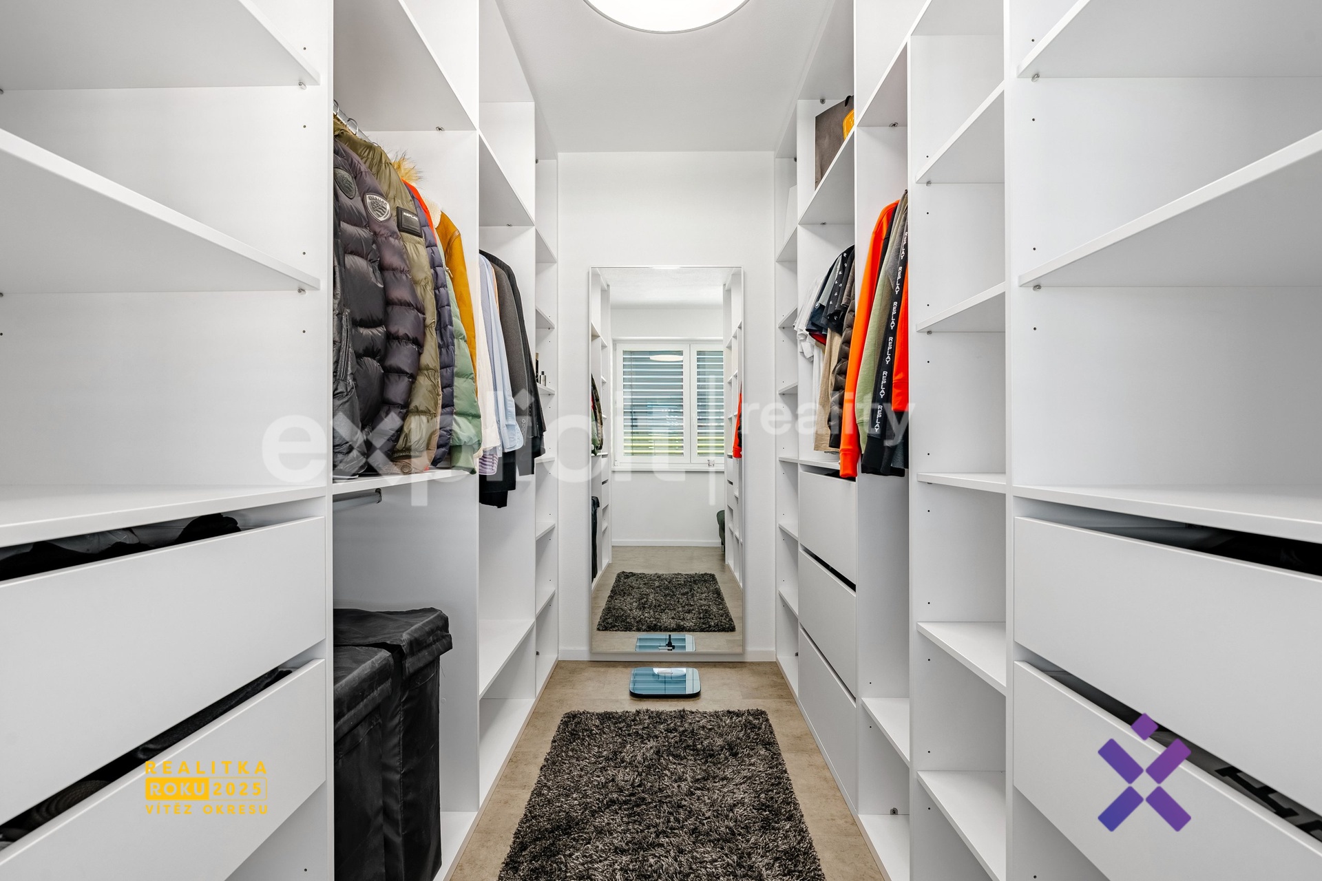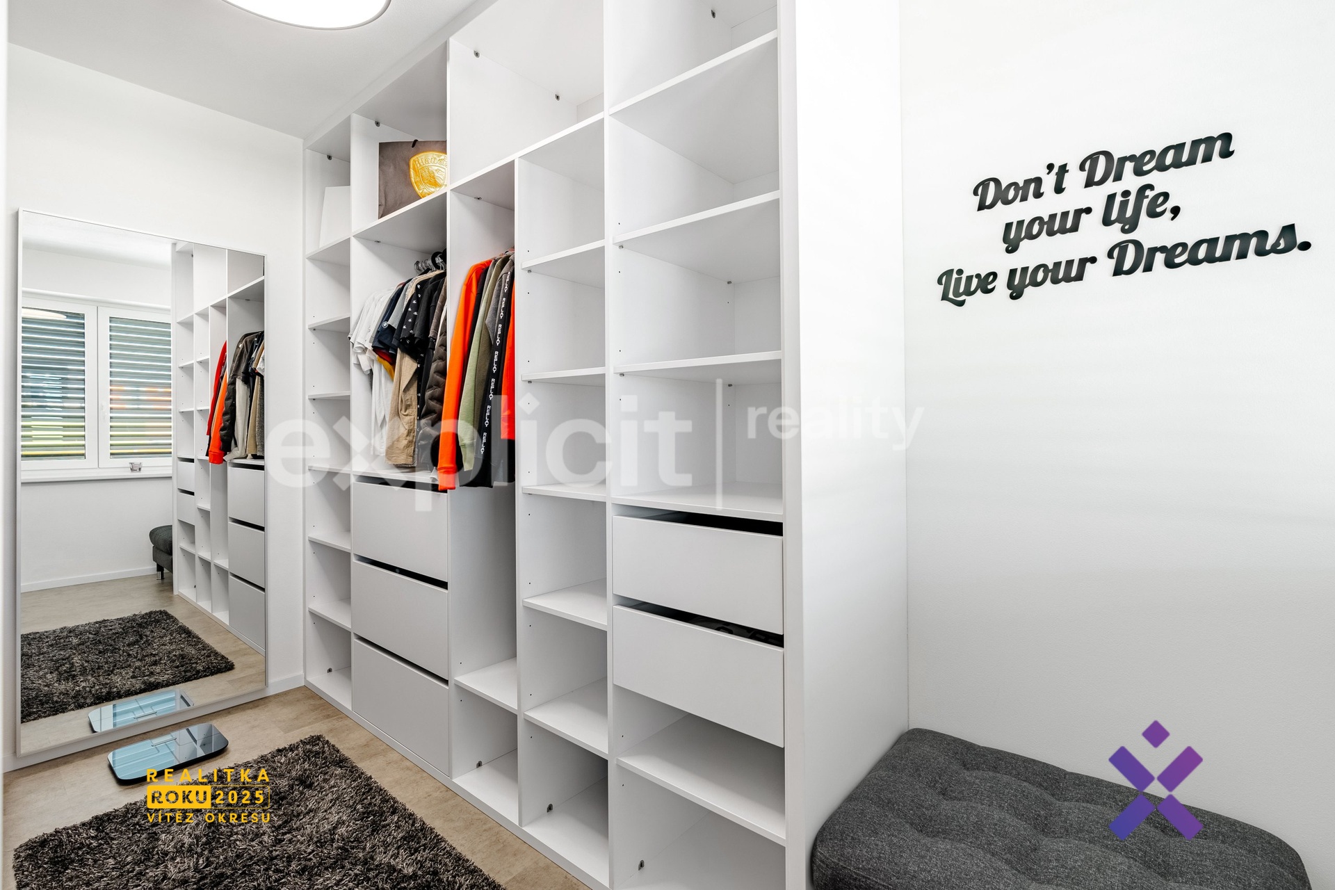 Ložnice má svou privátní otevřenou šatnu, která nabízí dostatek úložného prostoru a dokonale se přizpůsobuje potřebám moderního bydlení.