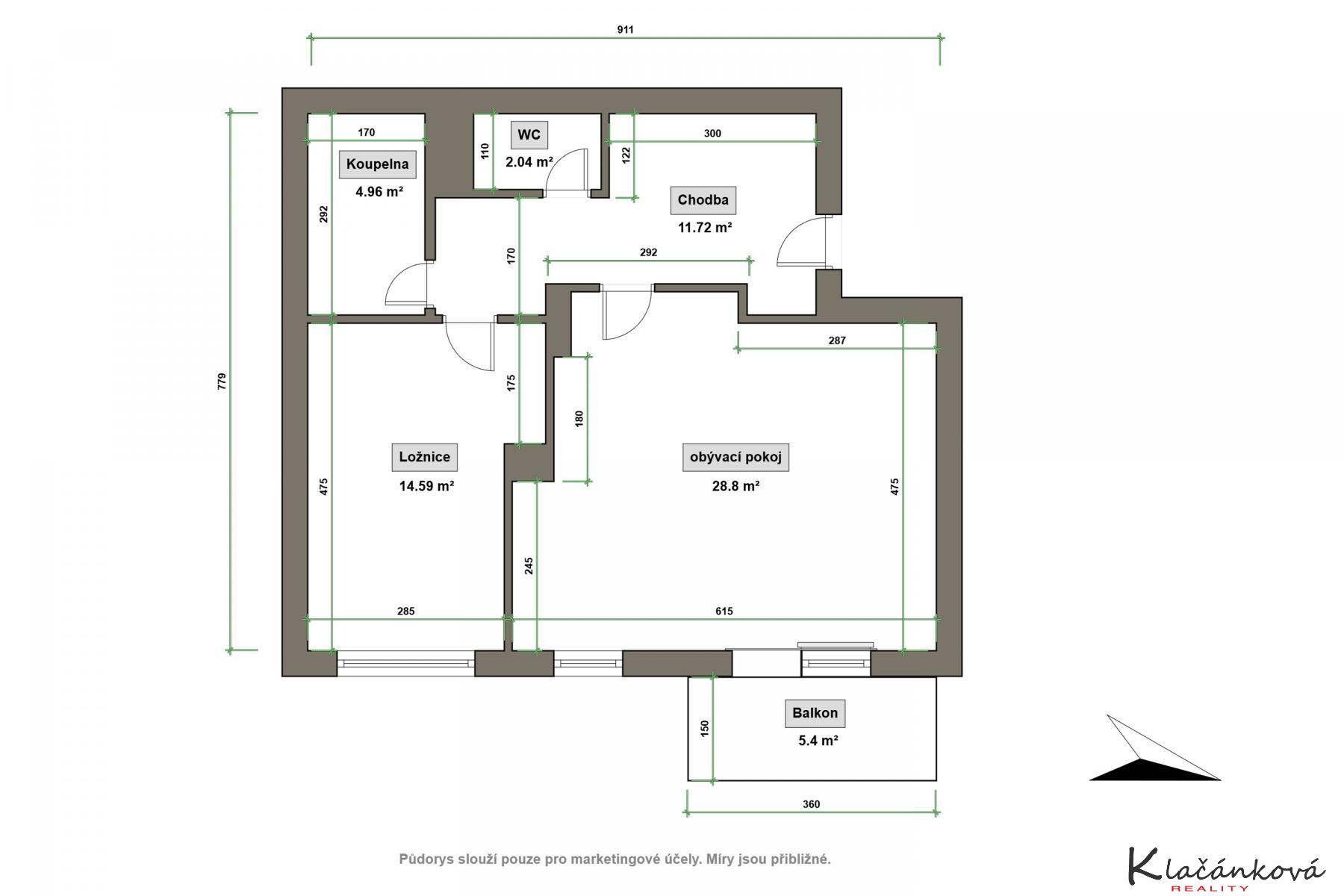 | Dispozice/podlahová plocha: | 2+kk/64 m² |