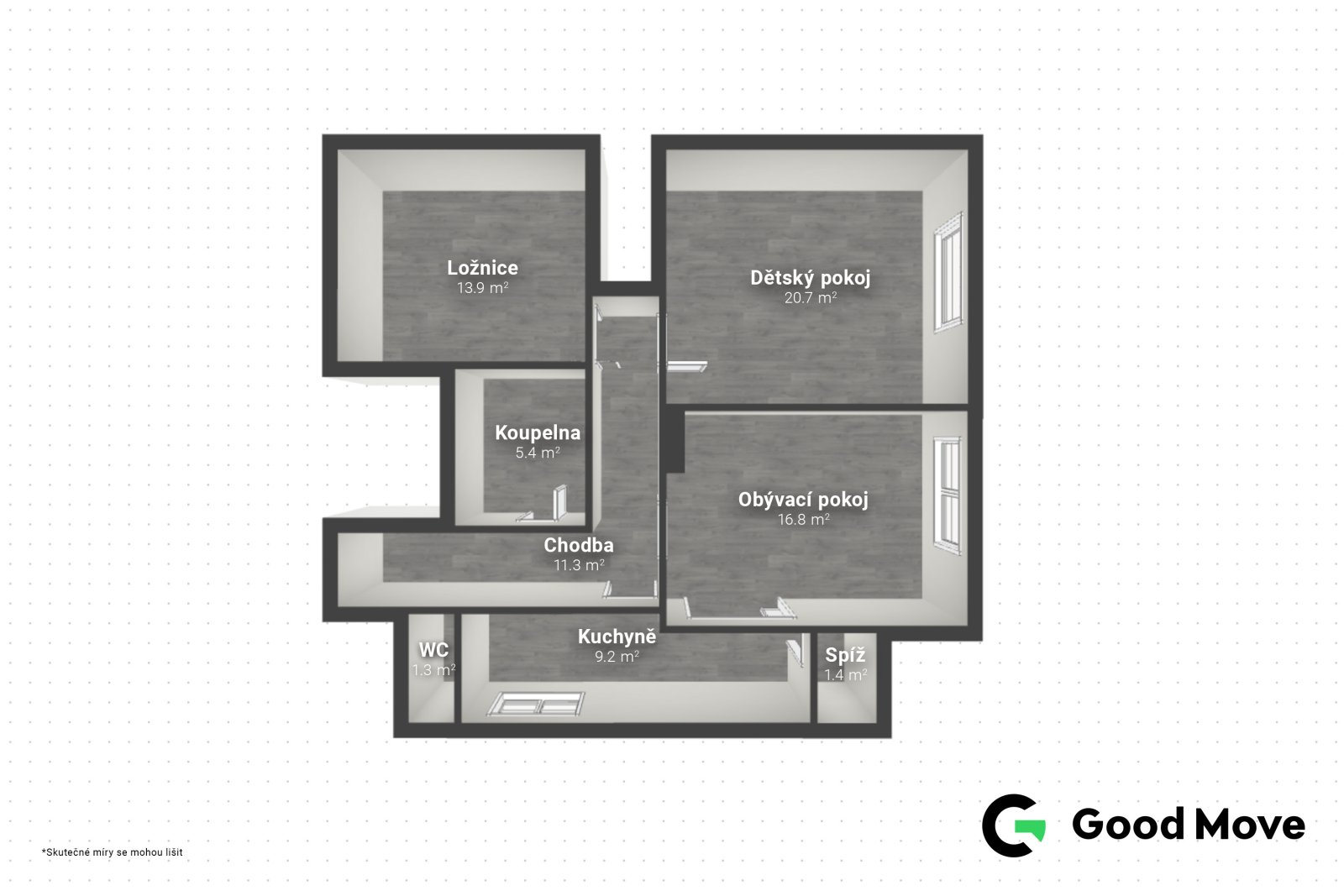 | Dispozice/podlahová plocha: | 3+1/80 m² |