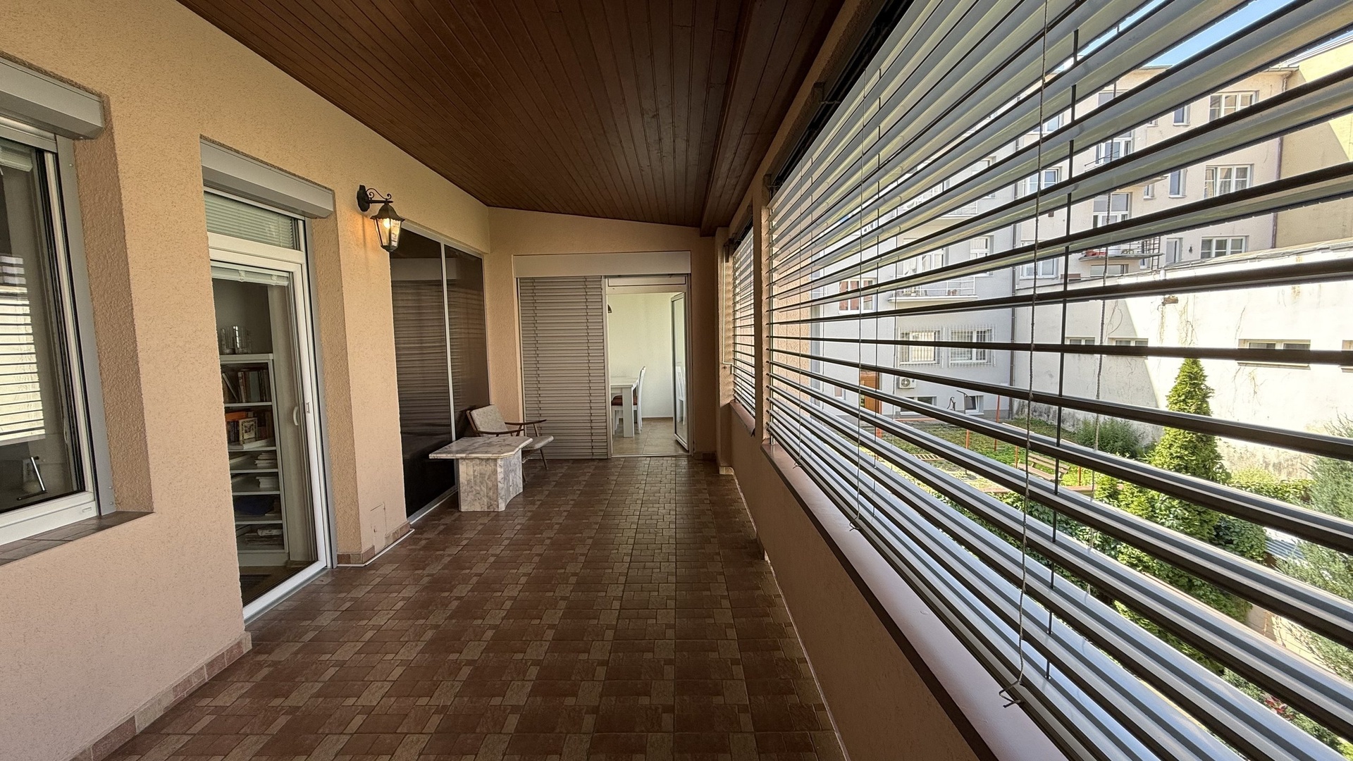 Byt ve 2.NP je citlivě členěn do jednotlivých obytných zón, kdy z ústřední vstupní chodby se lze dostat do jednotlivých místností, moderní kuchyně s jídelnou ( 19 m2) s výhledem do zahrady a vnitrobloku, velkou terasou se vstupem z jídelny a dětského pokoje (17 m2), na opačné straně pak do stylové ložnice ( 22 m2) a obývacího pokoje (24 m2), koupelny se srpchovým koutem, samostného WC a šatny.