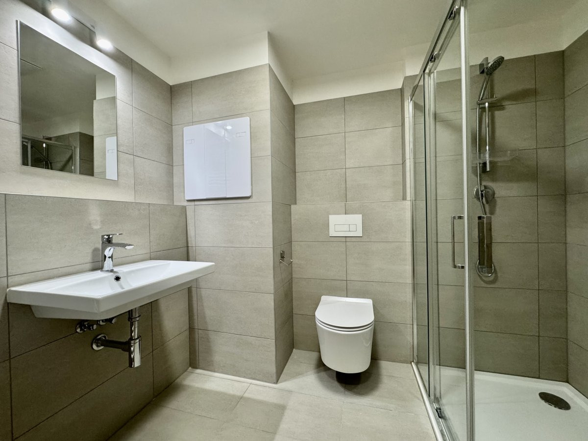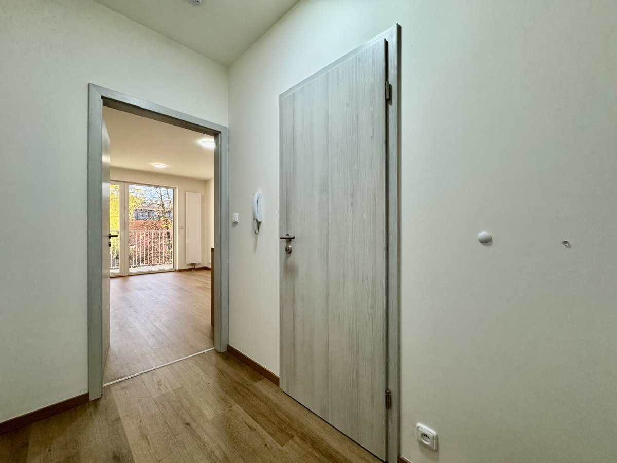 V bytě je nová kuchyňská linka vybavená troubou, varnou deskou a lednicí. Nechybí dostatek úložného prostoru, prostorná vstupní chodba a koupelna se sprchovým koutem a místem pro pračku. O zastínění se starají předokenní rolety.