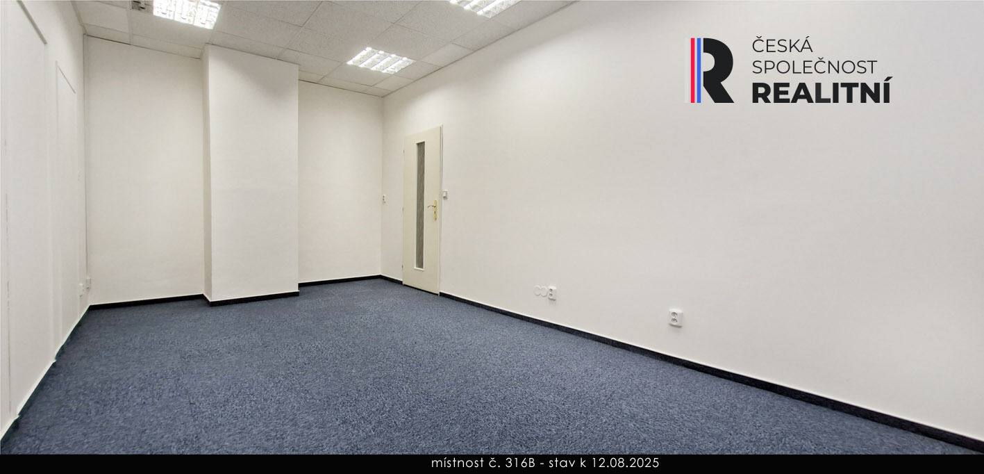 - velikost 25,08 m2, kancelář 422, cena nájemné 4.774,52 Kč + energie a služby 2.331,48 Kč (7.106,- Kč) + DPH, k dispozici ihned,