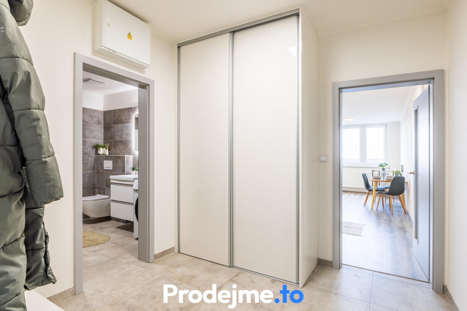 O komfort po celý rok se stará klimatizace, která příjemně ochladí byt i v letních měsících. Okna jsou připravena pro instalaci předokenních žaluzií a nabízejí výhled do okolní zeleně směrem k Nové nemocnici. Podlahy jsou řešeny vinylem, v koupelně je dlažba. Vytápění zajišťuje centrální kotelna přímo v domě prostřednictvím radiátorů. Fond oprav činí pouze 480 Kč měsíčně.