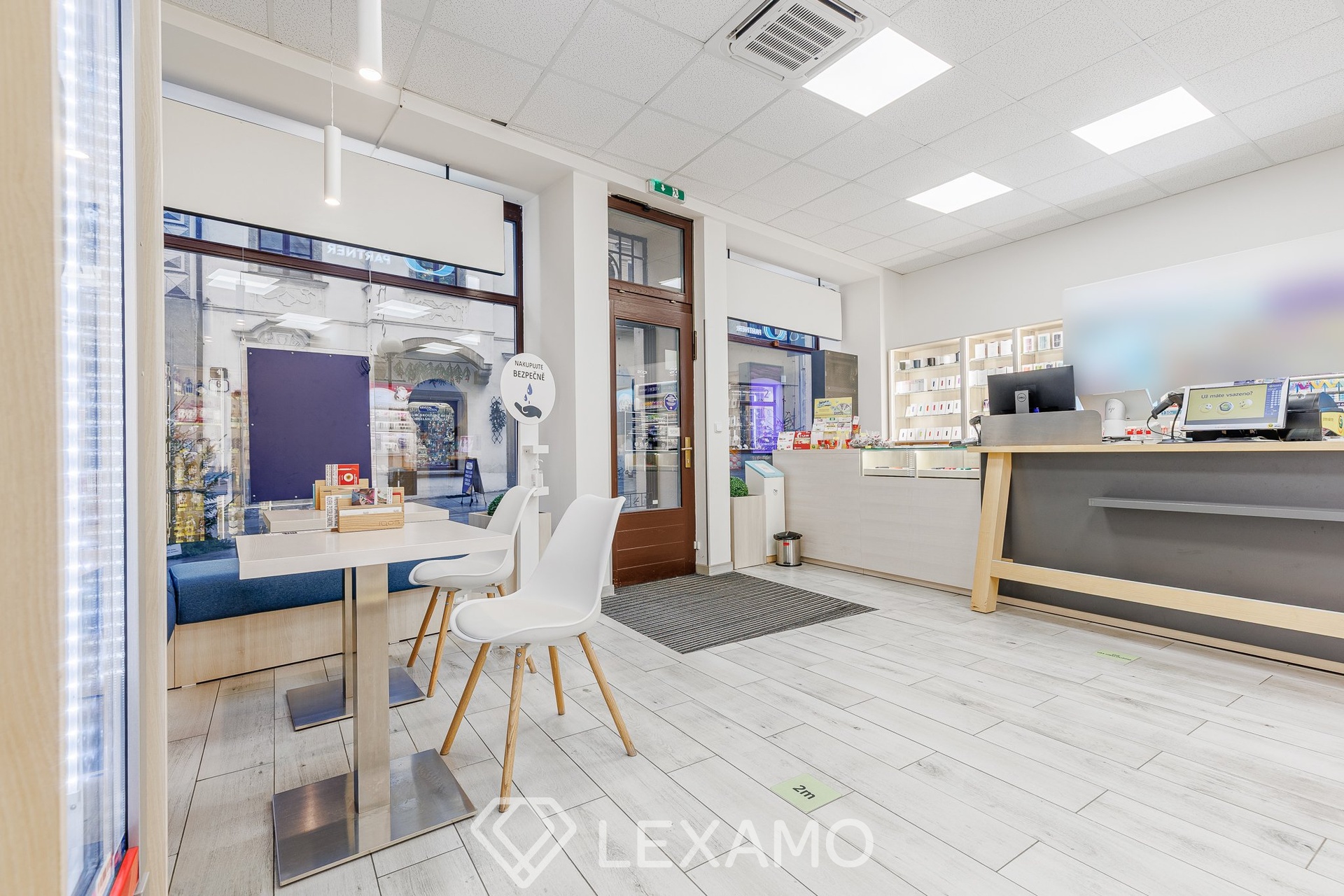 Interiér působí velmi elegantně a je vhodný jak pro obchodní činnost tak pro kancelář. Součástí prostoru je vlastní sociální zázemí a menší sklad navazující přímo na hlavní obchodní část, což zajišťuje praktické zázemí pro každodenní provoz. Další skladovací kapacity je možné využít ve sklepních prostorách domu, což je velkou výhodou zejména v centru města.