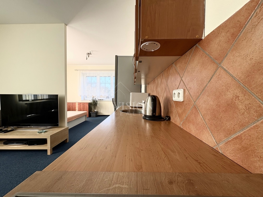 Byt se pronajímá plně zařízený a je připraven k okamžitému nastěhování, díky čemuž je ideální například pro mladý pár. Dispozice nabízí obývací prostor s kuchyňským koutem a vestavěnými spotřebiči, samostatnou ložnic a koupelna se sprchovým koutem a toaletou se nachází v přízemí.
