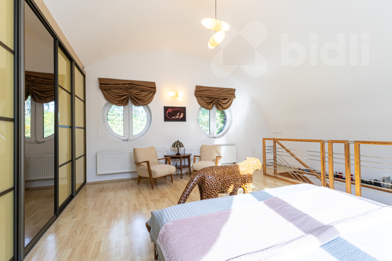 -2 pokoje s vestavnými skříněmi, jeden s balkónem, atypická ložnice s obloukovým oknem, vestavnými skříněmi a výhledem do lesa